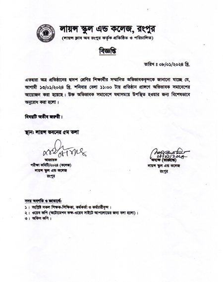 দ্বাদশ শ্রেণির অভিভাবক সমাবেশ সংক্রান্ত নোটিশ