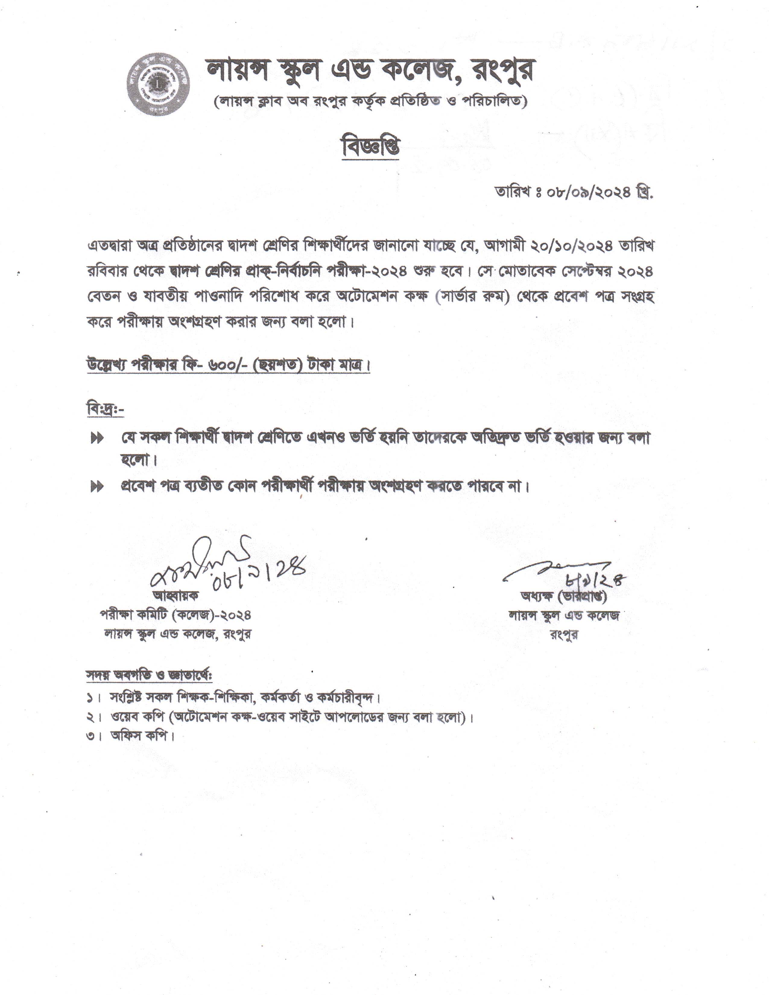 দ্বাদশ শ্রেণির প্রাক্-নির্বাচনি পরীক্ষা সংক্রান্ত নোটিশ