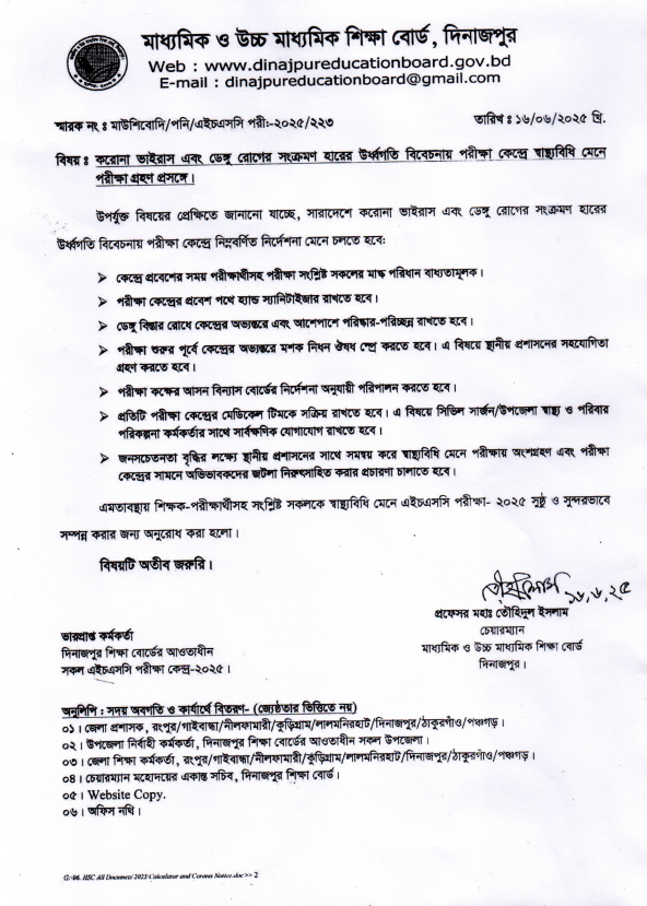 এইচএসসি পরীক্ষা-২০২৫ এর পরীক্ষার্থীদের নির্দেশনা
