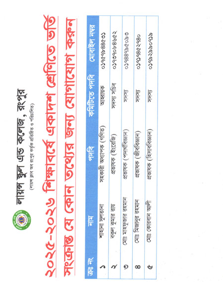 ২০২৫-২০২৬ শিক্ষাবর্ষে একাদশ শেণিতে ভর্তি সংক্রান্ত তথ্যের জন্য যোগাযোগ