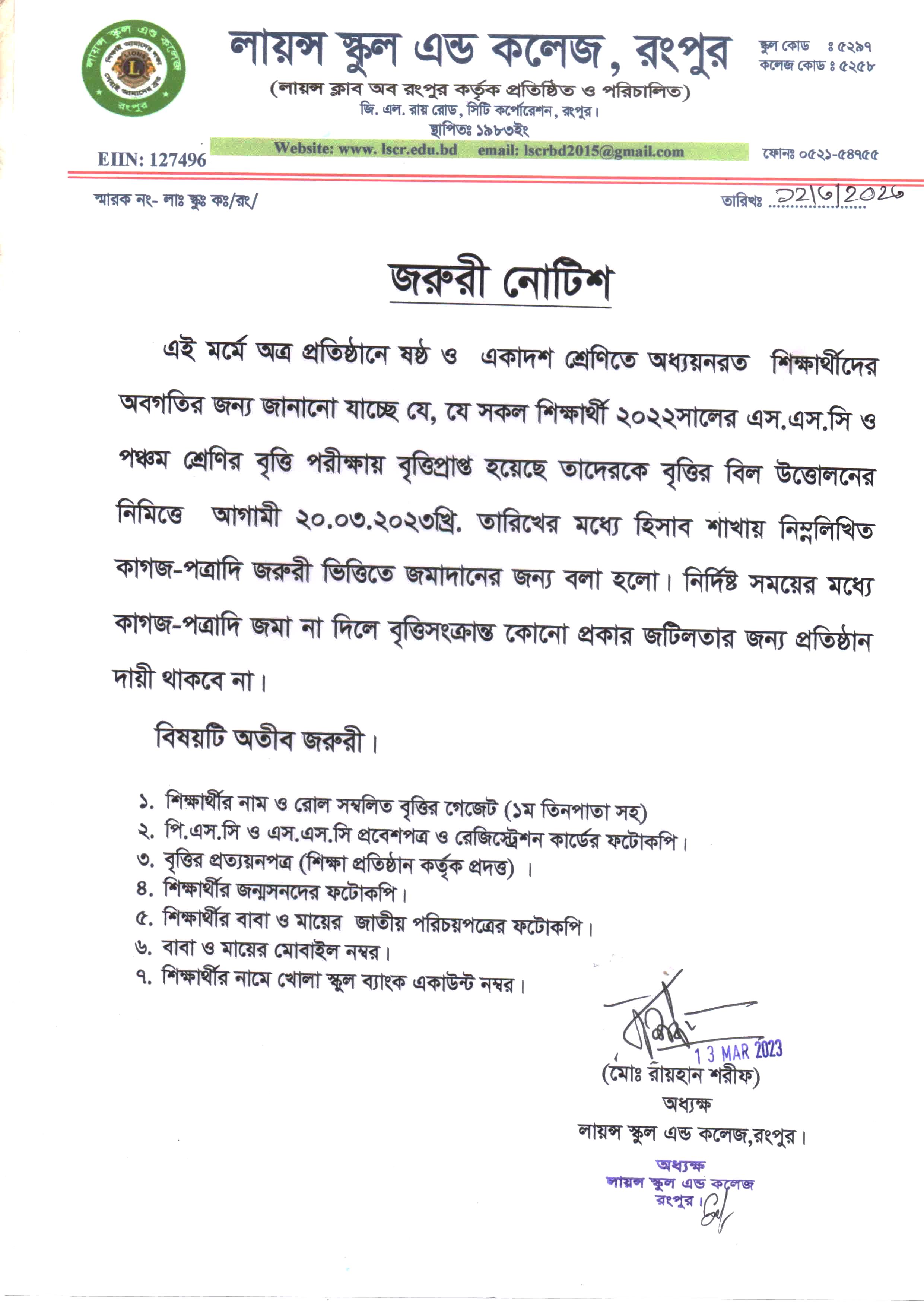 স্কলারশিপ সংক্রান্ত নোটিশ