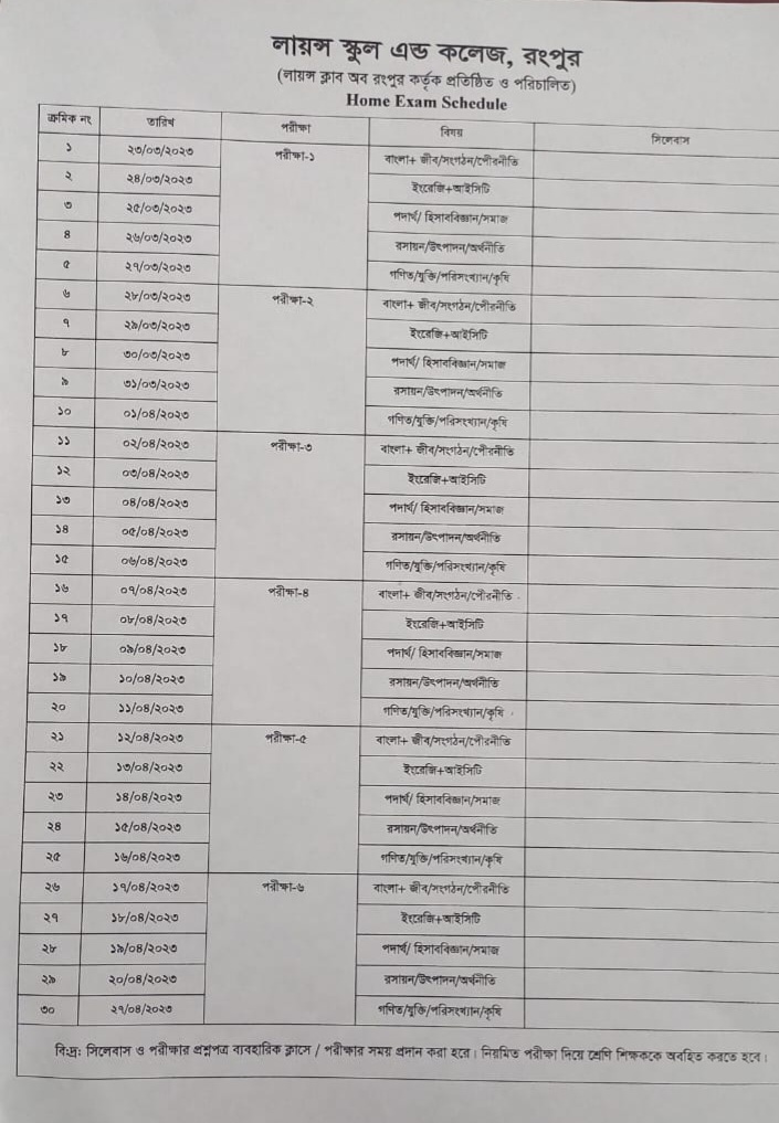 দ্বাদশ শ্রেণির হোম এক্সামের সিডিউল ২০২৩