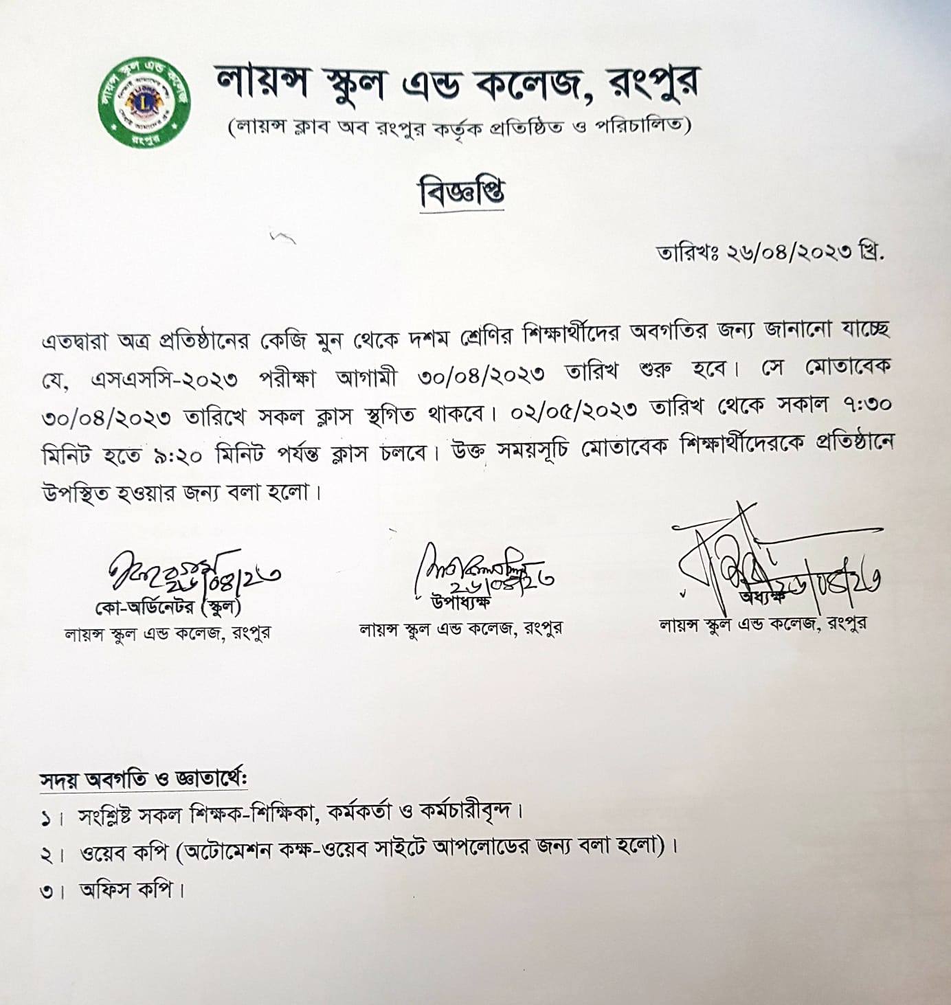 কেজি মুন থেকে দশম শ্রেনীর ক্লাস শুরু নোটিশ