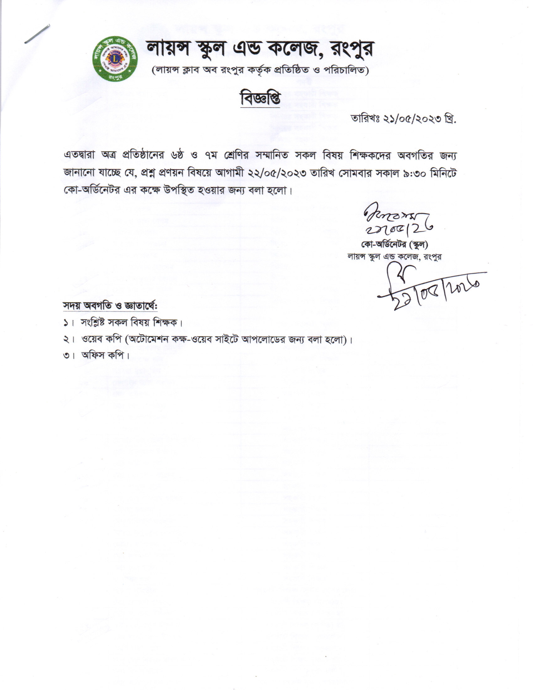 ক্লাস ৬ ও ৭ এর প্রশ্নপত্র প্রস্তুতকরন বিষয়ক সভা
